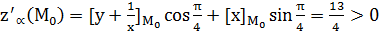 Видим, что функция z возрастает в точке в принятом нами направлении.