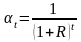 Для того чтобы отразить уменьшение абсолютной величины чистого дохода от реализации проекта в результате снижения «ценности» денег с течением времени, используют коэффициент дисконтирования, который рассчитывается по формуле [24]: