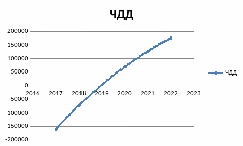 Критерий эффективности инвестиционного проекта выражается следующим образом: ЧДД > 0. Положительное значение чистого дисконтированного дохода говорит о том, что проект эффективен и может приносить прибыль в установленном объеме. Отрицательная величина чистого дисконтированного дохода свидетельствует о неэффективности проекта (т. е. при заданной норме прибыли проект приносит убытки предприятию).