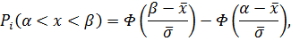 где Pi – теоретическая вероятность попадания отдельного значения интервала. Которая определяется по формуле: