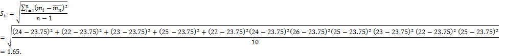 Определим среднеквадратичное отклонение отдельных результатов измерений относительно их среднего значения: