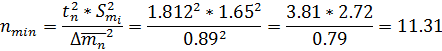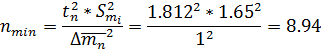 Теперь определим минимально необходимое число измерений для обеспечения доверительной погрешности результата измерения не более 1 мм.