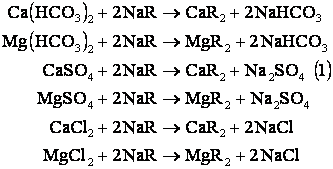 Процессы, протекающие в слое катионита, при фильтровании через него умягченной воды могут быть схематично представлены следующими реакциями в молекулярной форме: