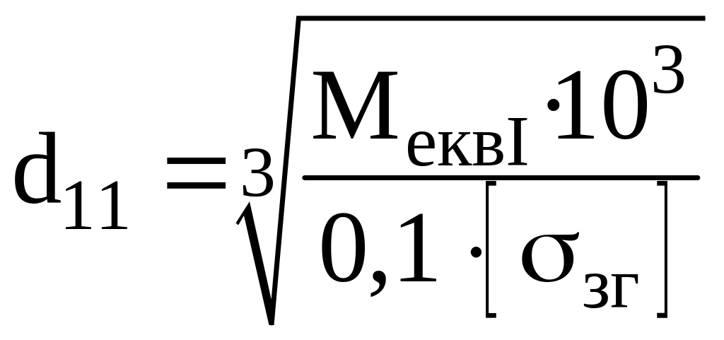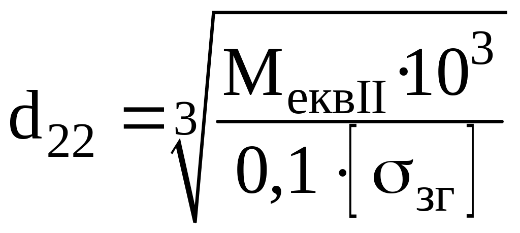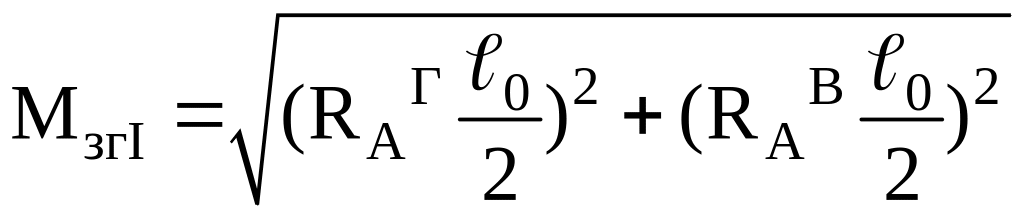 Визначаємо сумарні згинальні моменти в передбачуваних небезпечних перерізах I-I під колесом й у перетині II-II поруч із підшипником, ослаблених галтеллю: