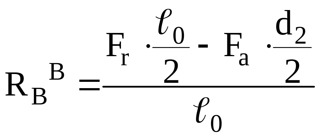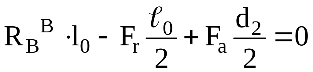 Визначаємо реакції в опорах від дії сил Fr й Fa у вертикальній площині. Для цього складаємо суму моментів всіх сил щодо опор А и В і знаходимо опорні реакції.