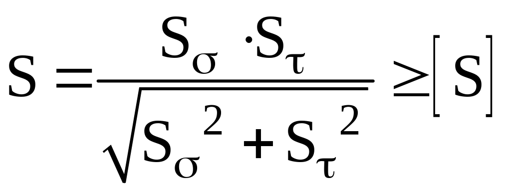 У небезпечному перерізі визначаємо запаси міцності на втому й порівнюємо їх із допустимими. Визначаємо запас міцності на втому при згині: