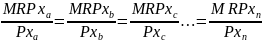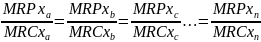 Другими словами для использования каждого переменного ресурса в максимизирующих прибыль пропорциях и максимизирующую прибыль абсолютных количествах фирма должна добиться, чтобы ее комбинация ресурсов удовлетворяла условию, при котором
