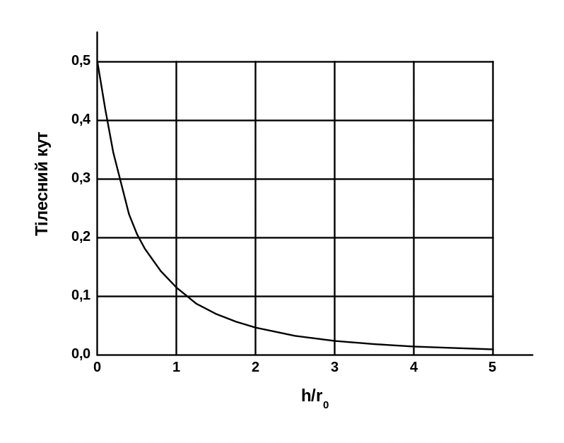 Рис. 5. Залежність поправки на тілесний кут ω від співвідношення h/r0 для r/r0 = 1 |