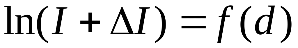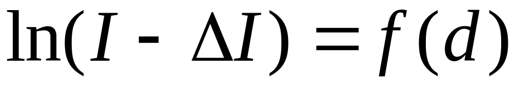 Рис. 6. Залежність логарифма інтенсивності швидкості лічби детектора бета частинок від товщини алюмінієвих поглиначів. |