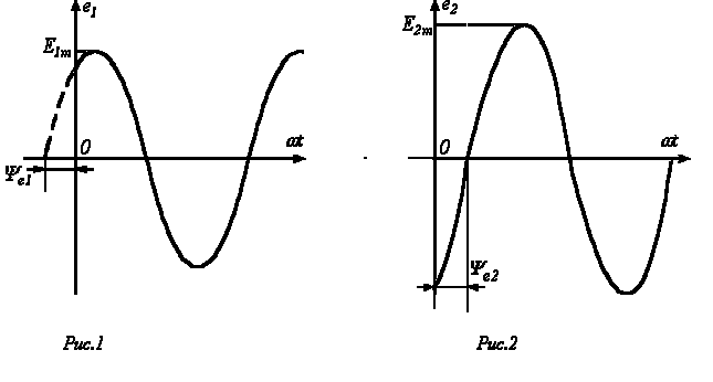 Приведенным на рис. 1, 2 графикам двух синусоидальных ЭДС е1ие2соответствуют уравнения: