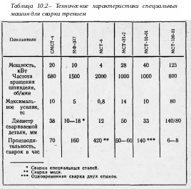 Кроме этих машин, разработано, изготовлено и успешно эксплуатируется много специальных машин, предназначенных для сварки деталей только одного наименования в условиях массового или крупносерийного производства (табл. 10.2).