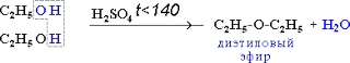 2C2H5OH t<140,H2SO4(к)→ С2H5-O-C2H5 + H2O