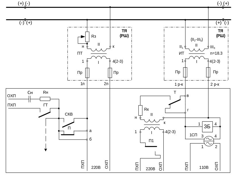 – чередованием мгновенных полярностей напряжений на стыках смежных РЦ путем взаимного переключения питающих проводов на вторичных зажимах путевых трансформаторов.