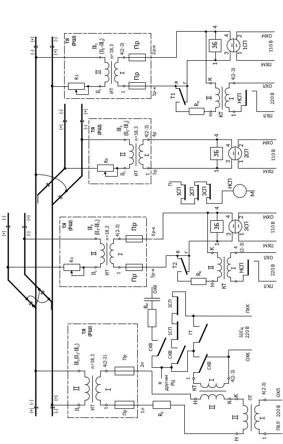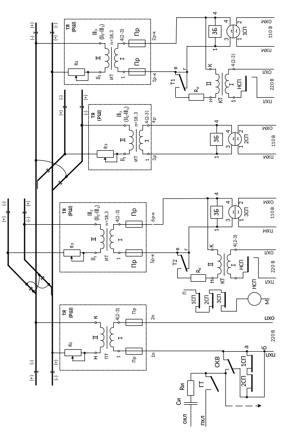 Рисунок 22 – Разветвленная РЦ переменного тока 25 Гц с тремя реле ДСШ-13А без наложения АЛСН |