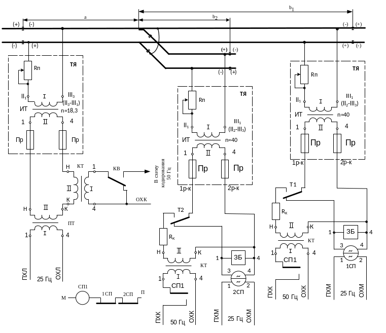 Устройства питания фазочувствительных РЦ переменного тока 25Гц при автономной тяге аналогичны устройствам питания РЦ 25Гц при электротяге переменного тока (см. рисунок 9).