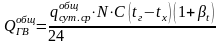 Q общ = V общ · qвобщ(tв-tрно)·βt, Вт