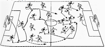 2.АДостаточно активно маневрировать по фронту и длине поля всем игрокам передней и средней линии. Особенно здесь важно умелое “открывание” ближайших от игрока с мячом партнеров.