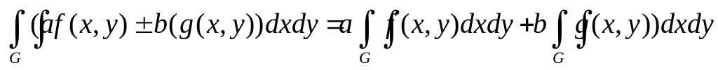 Для двойного интеграла справедливы свойства линейности и аддитивности: