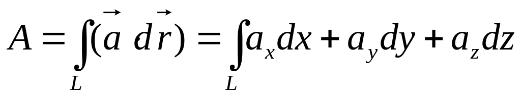 Если поле а – силовое поле, то работа А поля при перемещении материальной точки по дуге L равна