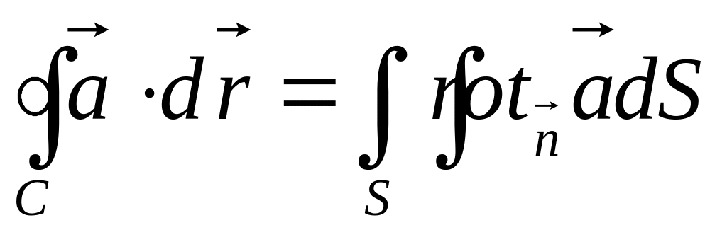 Формула Стокса. Циркуляция векторного поля по замкнутому контуру С равна потоку его ротора через произвольную поверхность S, «натянутую» на контур С: