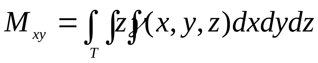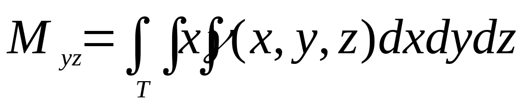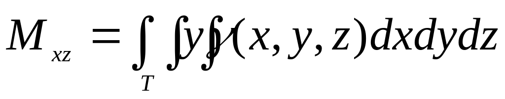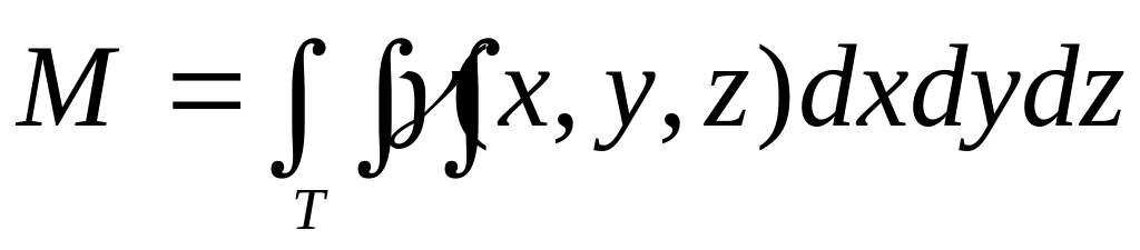 Масса тела с переменной плотностью γ(x, y, z), занимающего область Т: