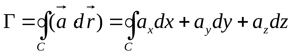 Циркуляция векторного поля по замкнутому контуру С в выбранном направлении равна