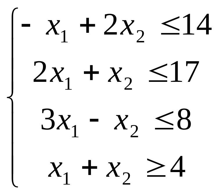F = 4x1 - 3x2 при ограничениях F = 2x1 - x2 при ограничениях
