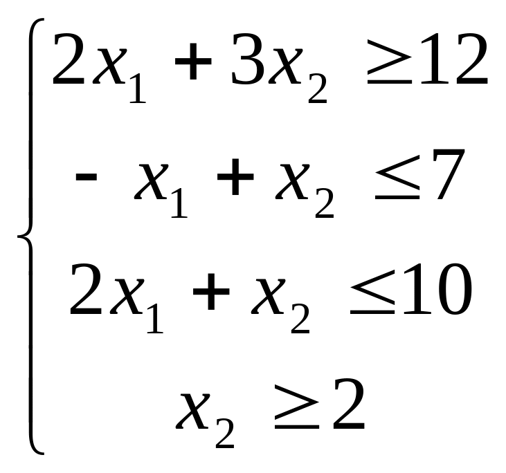 F = 2x1 + 3x2 при ограничениях F = -2x1 + 3x2 при ограничениях