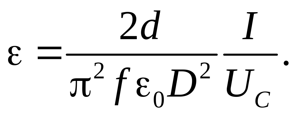 который зависит от величины ёмкости С. Эту ёмкость мы изменяем, нагревая пьезоэлемент и изменяя величину , а вместе с ней и ёмкость С. Таким образом, по величине тока в цепи, содержащей конденсатор, мы можем определить ёмкость конденсатора и, следовательно, диэлектрическую проницаемость. Действительно, из выражений (3) и (4) получаем: