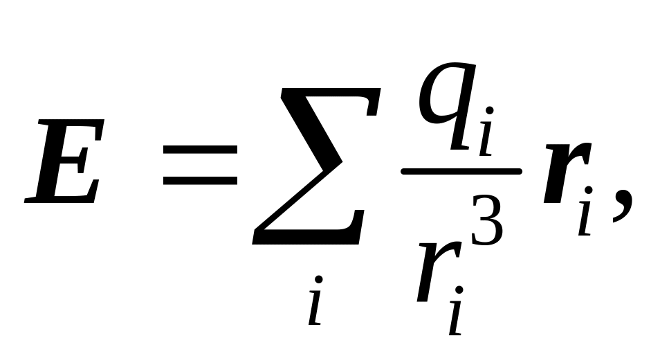 где ri – радиус-вектор, проведённый от i – го заряда в точку, где ищется вектор напряжённости поля E.