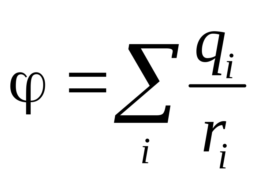 Нахождение эквипотенциальной поверхности производится также на основе принципа суперпозиции с учетом того, что потенциал системы точечных зарядов равен сумме потенциалов отдельных зарядов, создающих это поле: