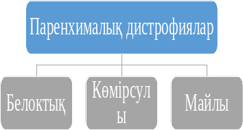 Паренхималық дистрофия деп зат алмасу үрдісінің тек жасуша ішінде бұзылуын айтады. Бұлар: 1) белоктық (диспротеиноздар); 2) майлы; 3) көмірсулы паренхималық дистрофиялар деп бөлінеді.