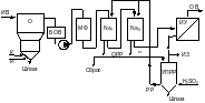 УПРР – узел приготовления регенерационного раствора; ИС – испаритель стоков; УВСЖ – узел выделения жестких стоков регенерации; ИЗ – избыток натриевых солей; Кд – корректирующая добавка