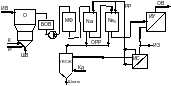 Согласно второму варианту (рис. 3.2) исходная вода поступает в осветлители (О), где обрабатывается коагулянтом – оксихлоридом алюминия (Al2(OH)5Cl). В осветлители предусматривается ввод флокулянта. Коагулированная вода собирается в баках осветленной воды (БОВ) и фильтруется через механические фильтры (МФ), загруженные антрацитом. После очистки на механических фильтрах осветлённая вода подаётся на Н-Na-катионитные фильтры, работающие по технологии противоточногоионирования. Фильтры загружены смесью слабокислотного и сильнокислотного катионита.