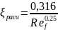 11. Полученное значение коэффициента гидравлического сопротивления сопоставляется с расчетным по формуле Блазиуса: