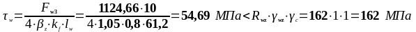 Проверяем прочность сварных швов №2, которые передают с внутренней полки колонны на траверсу усилие: