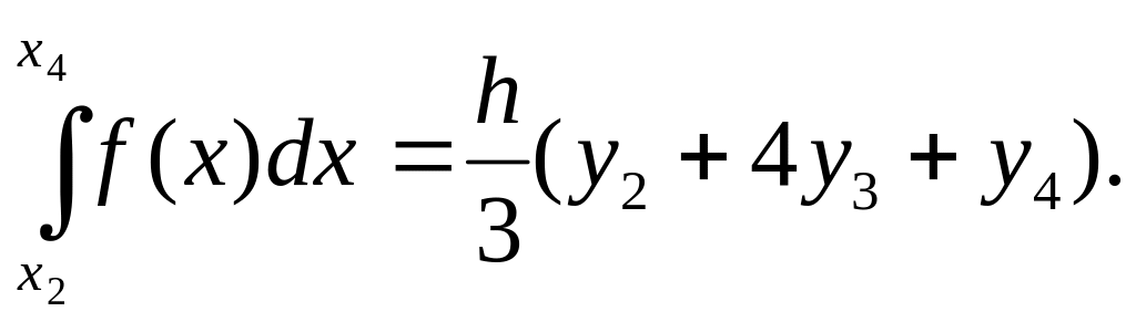 Формула (13) называется обобщенной формулой Симпсона или формулой парабол, так как при ее выводе график подынтегральной функции на частичном отрезке длины 2h заменяется дугой параболы.