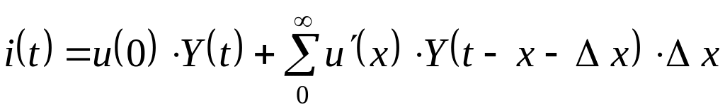 При уменьшении интервалов x до бесконечно малых значений ступенчатая кривая изменения напряжения максимально приблизится к кривой , и выражение переходного тока примет вид