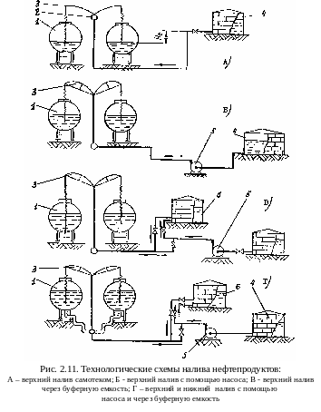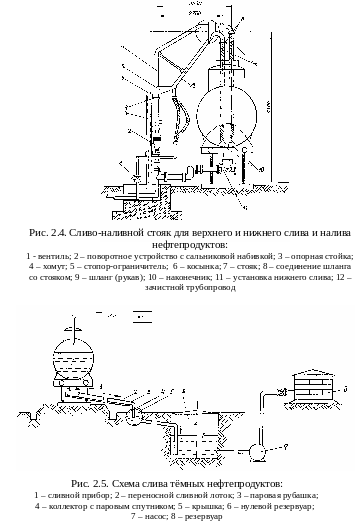 При эксплуатации нефтебазового хозяйства используются, в основном, следующие способы слива и налива нефтепродуктов: