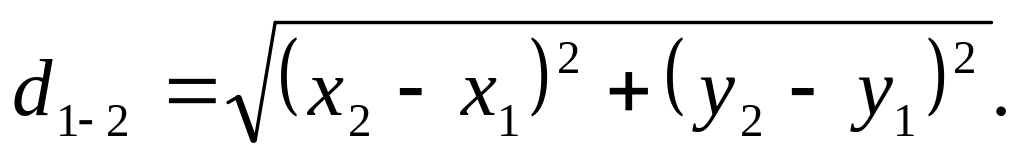 Расстояние между точками вычисляют по формуле