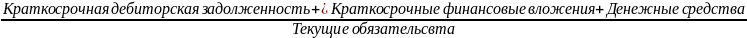Текущая ликвидность: нормальным считается состояние, при котором данный коэффициент более единицы.