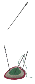 Булавки могут быть с металлической или стеклянной головкой. Применяют для скалывания деталей изделия, прикалывания бумажных лекал к ткани. Булавки должны быть тонкими, хорошо заостренными и отшлифованными. |