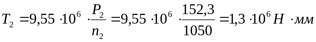 T2 = 1,3106 Нмм ; n 2= 1050 об/мин ; t h = 1000 ч ;