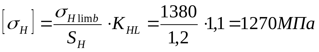 S H =1,2 ; [ H ]=1270 МПа