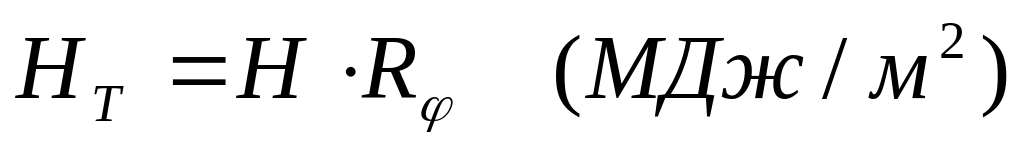 где R – отношение среднемесячных дневных приходов суммарной энергии на наклонную и горизонтальную поверхность.