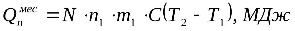Норма расхода горячей воды на одного человека в день 50 литров, температура воды в баке-аккумуляторе к концу дня 50 оС (323 оК).
