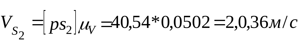 S1, S2, S3, S4 нүктелерінің орны жылдамдықтар жоспарында механизм мен жылдамдықтар жоспарларының ұқсастық теоремасы негізінде келесі пропорциялармен анықталады: