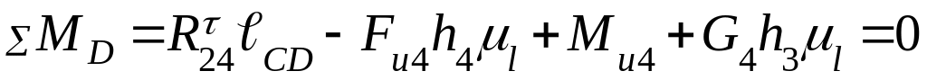 D нүктесінен 4 звеноға әсер ететін күш моменттерін есептеу арқылы реакциясының өлшемін табамыз