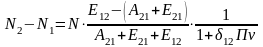 dN2/dt = N1BП + N1E12 - N2BП - N2A21 - N2E21 ;