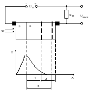 Упрощенная структура фотодиода на основе p-n - перехода приведена на рис. 5.5. Такой прибор по существу представляет собой обратно - смещенный р-n - переход. Важными свойствами такого перехода является наличие обедненной носителями области перехода, концентрирующей относительно сильное поле, и области поглощения, где поглощается падающий свет (захватываются фотоны).